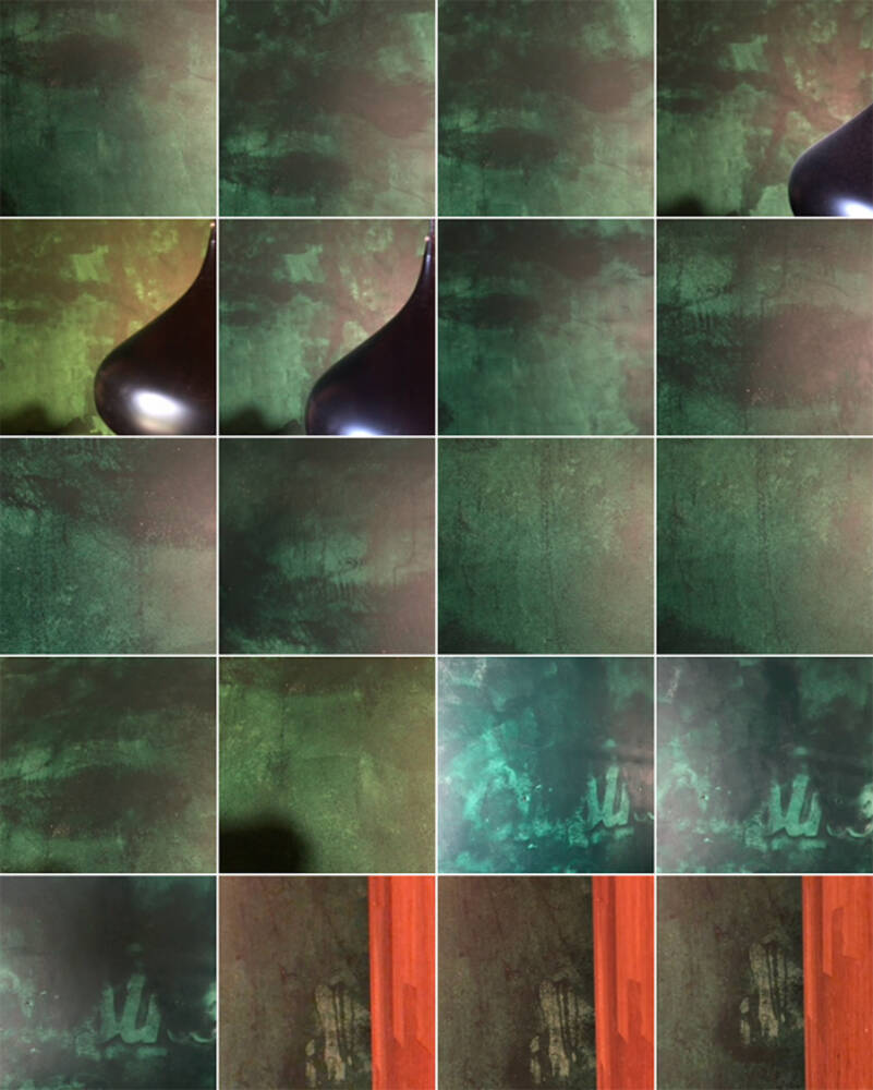Maar daarmee ben je er nog niet. Want ik houd niet van verf rollen, dus moet het worden geschilderd. Nadat de muur eerst wat was bijgewerkt begon dus het schilderen. Dat leverde mooie 'momenten' op. En dan weet je dat je er nog een keer (of twee keer) opnieuw overheen moet. Maar je wilt niet al die mooie plekjes laten verdwijnen onder een egale laag... Dus hebben we één klein stukje gelaten zoals het na de eerste laag was, rechts naast de kachel in de keuken, op een voor bijna iedereen onzichtbare plek. Mijn lievelingsplekje van die muur.