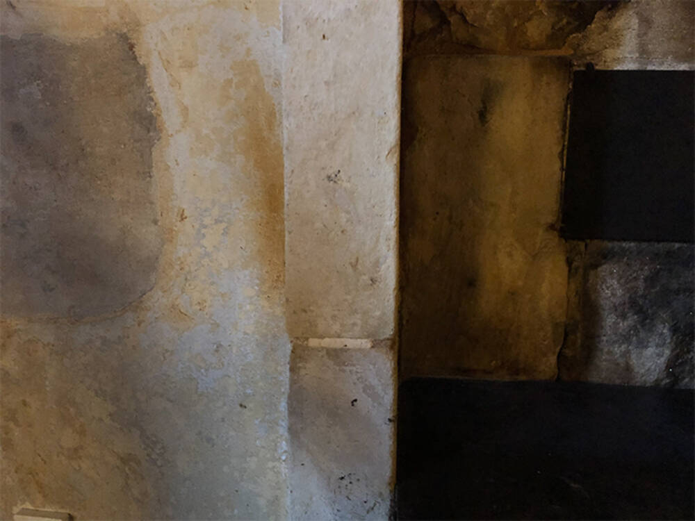 Muur éénmaal geschilderd, bedenk je je dat die kachel eigenlijk van de vloer af moet, want je wilt niet zoveel moeten bukken voor het bijladen van hout. Het mag niet te hoog, want dan past het niet meer onder de haard. En het moet bij het geheel passen.