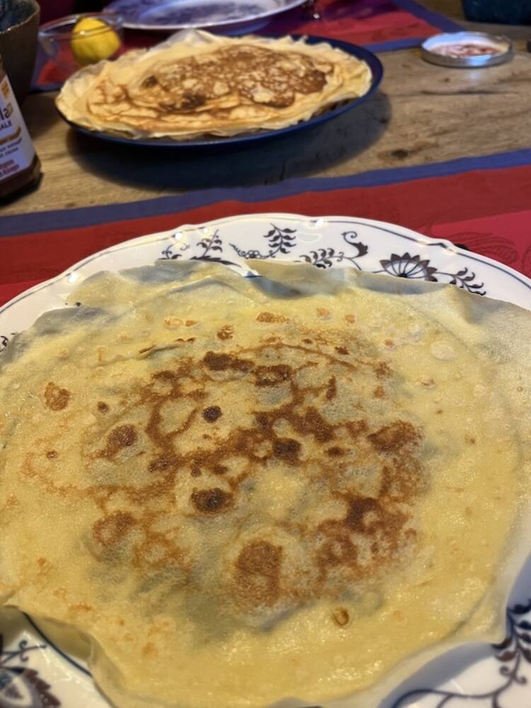 Chandeleur is het feest van de crêpes in Frankrijk. Elk jaar op 2 februari bereiden Fransen hun typische dunne pannenkoekjes waar we hier zo ontzettend dol op zijn. Behalve suiker en alcohol gaan er lekker veel eieren in. Ik begreep altijd van mamie, onze buurvrouw, dat Chandeleur precies valt in de periode dat de kippen veel eieren leggen, maar Wikipedia denkt daar anders over.