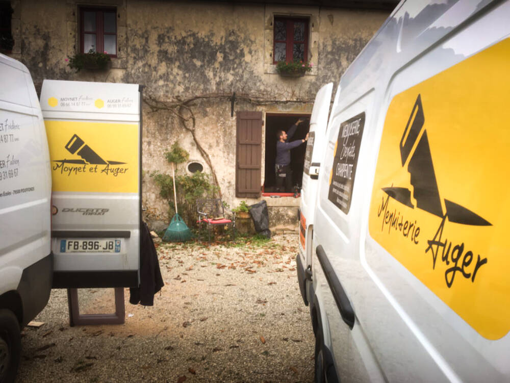 Un peu par hasard nous avons fait la connaissance d'un menuisier du coin avec lequel le courant passait super bien et qui nous a installé les fenêtres du rez-de-chaussée (gîte, bureau, salon, cuisine) - et dont nous sommes très contents.