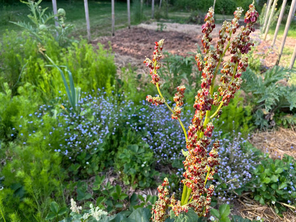 We waren er op tijd bij en hadden alles redelijk op orde rond hal mei. Maar toen ging het regenen en bleef het (te) lang koud. En daar houden tuinen niet van. Voor een aantal planten was het geen probleem: sla, peterselie, bietjes, uien, knoflook, prei, boerenkool, spruitjes, artisjokken, aardbeien, rabarber, aardappelen - die gingen allemaal goed (hoewel de aardappel oogst wel wat tegenviel).