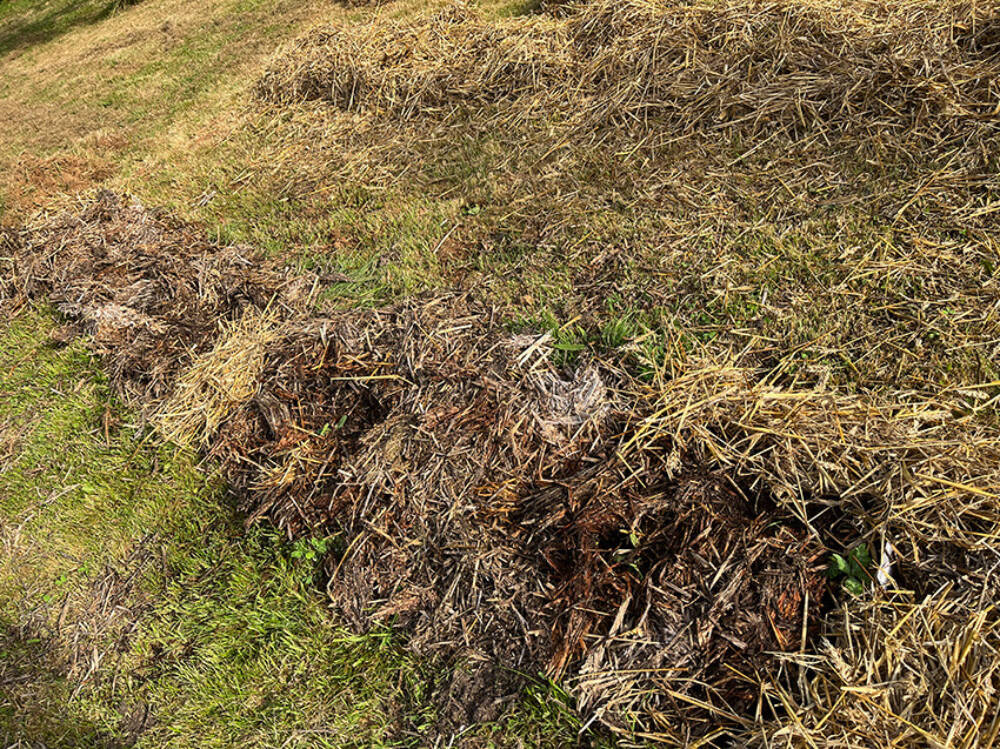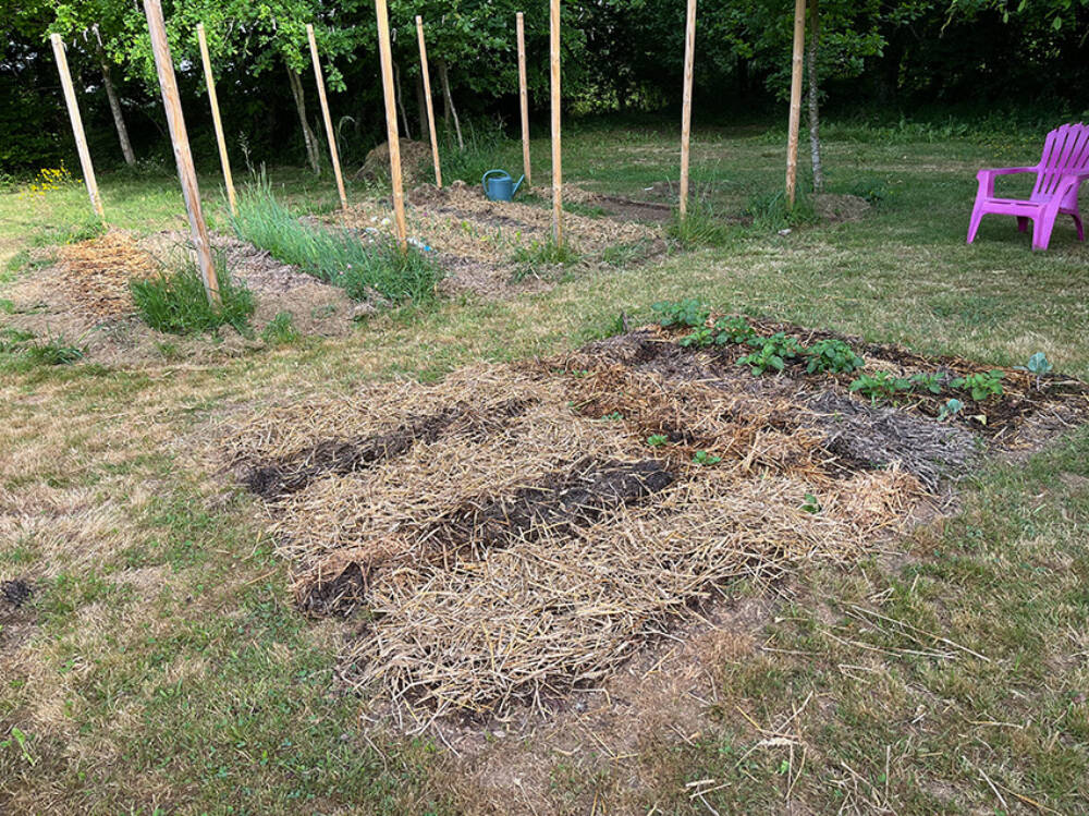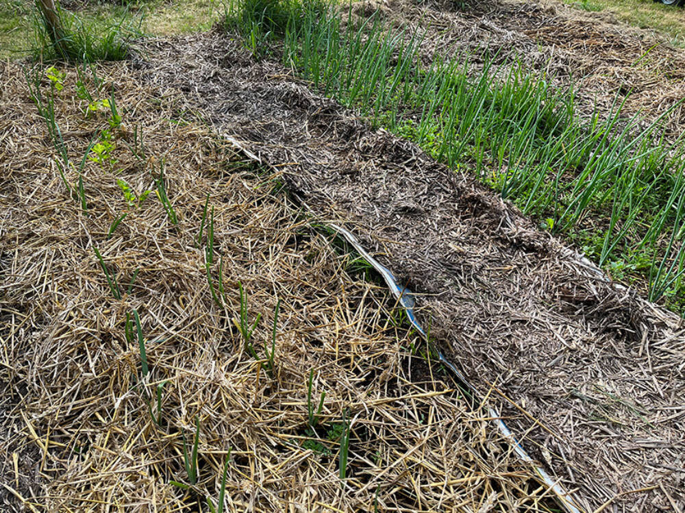Dus hebben we een apparaat aangeschaft waarmee we het met mankracht kunnen doen. Dat gaat heel goed, maar kost veel tijd. En veel kracht. Maar het gaat. Zeker als je denkt dat je er met een paar gaten in de grond wel komt: die tomatenplantjes hebben toch niet meer nodig? Zeker niet als je mulcht - een techniek waarbij je de aarde bedekt met een dikke laag organisch materiaal, in ons geval stro. Dat mulchen doen we al sinds we hier wonen, in het begin tot groot vermaak van de buren. Die het nu ook zo'n beetje allemaal doen.