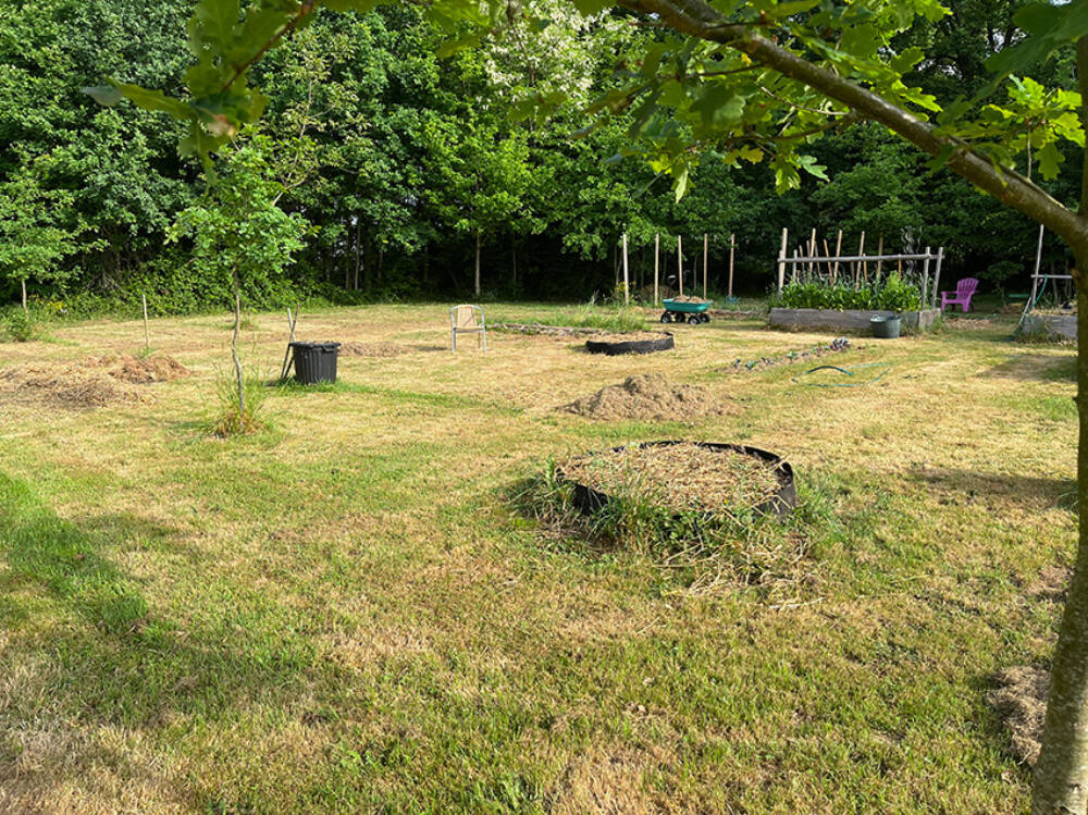 En ach, omdat ik toch wat meer aardappelen wilde telen, vooruit, een veldje tussen de officiële bedden en de bakken van het eerste jaar. Dat zou wel van pas komen. en dat deed het, want in het najaar gingen daar de kolen in, waar we deze winter van hebben gegeten!