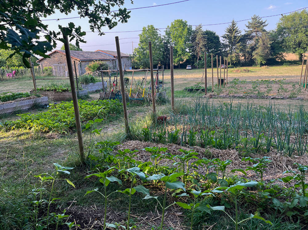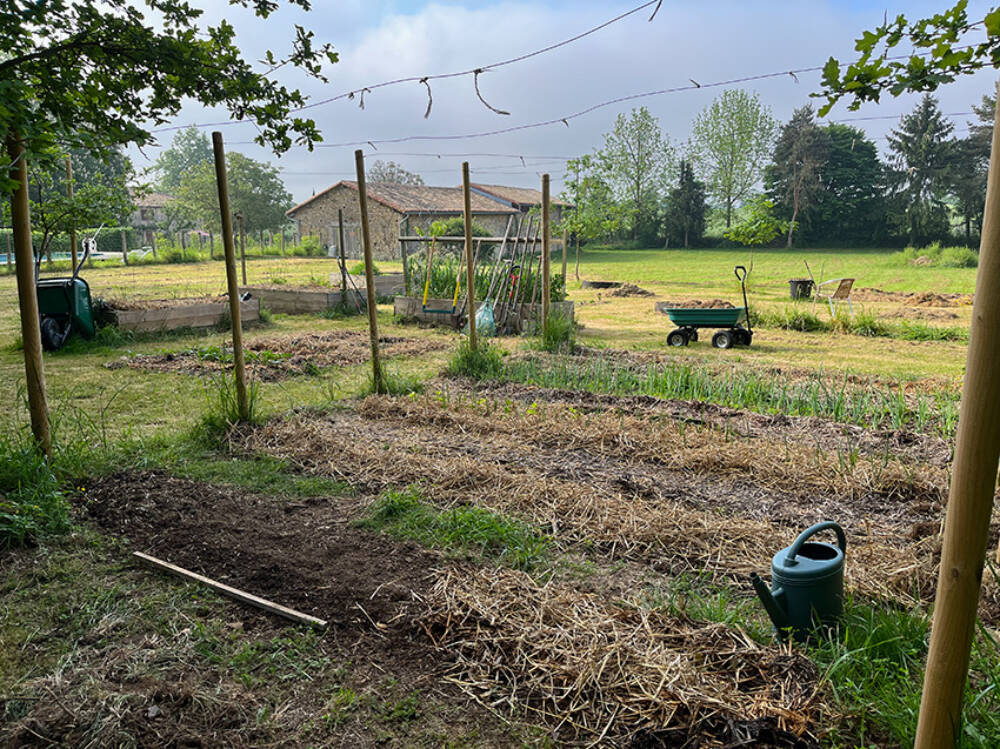 Het tuinieren tussen die palen, dat beviel me wel. Het geeft een wat intiemer gevoel, op wat toch een weidse ruimte is. En omdat die palen het wel een paar jaar zullen uithouden, besloten we om er maar een systeem van te maken. Een tweede veld werd klaargemaakt om de tomaten te planten, die immers maar ééns in de vier jaar op dezelfde plaats mogen komen.