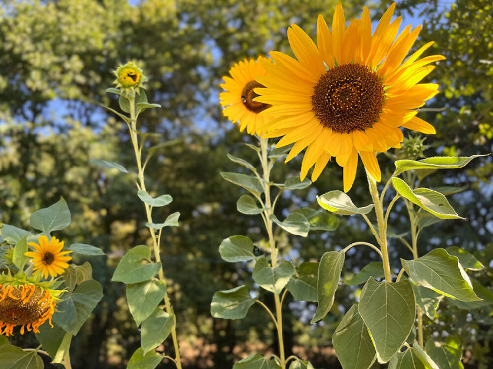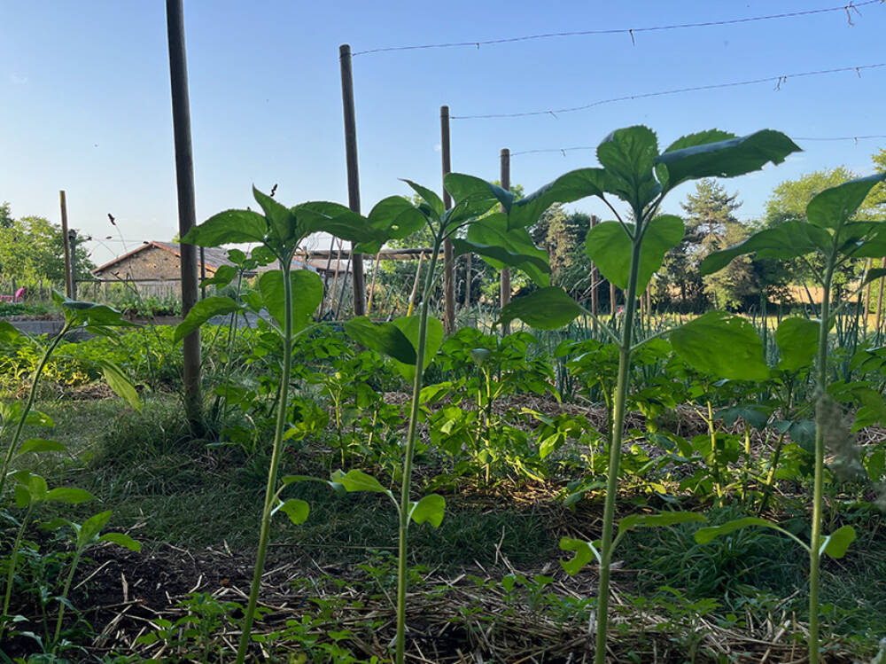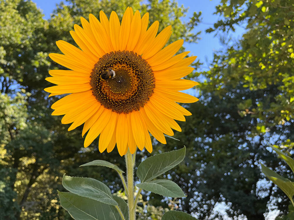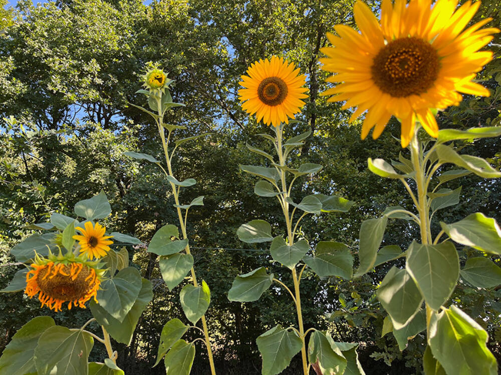 2022 was ook het eerste jaar waarin we eindelijk eens zonnebloemen kweekten, en dat vonden niet alleen wij leuk, maar ook de bijen en andere insecten.